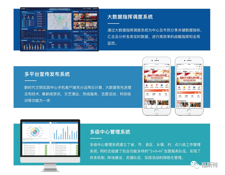 安徽福斯特信息技術(shù)有限公司持續(xù)助力新時(shí)代文明實(shí)踐中心建設(shè),充分利用大數(shù)據(jù)、云計(jì)算、移動互聯(lián)網(wǎng)等新一代信息技術(shù),打造新時(shí)代文明實(shí)踐中心云平臺,完善平臺動員、整合、引導(dǎo)、服務(wù)、創(chuàng)新和保障能力,實(shí)現(xiàn)新時(shí)代文明實(shí)踐中心的可持續(xù)運(yùn)營。